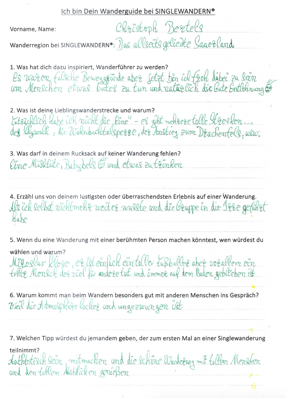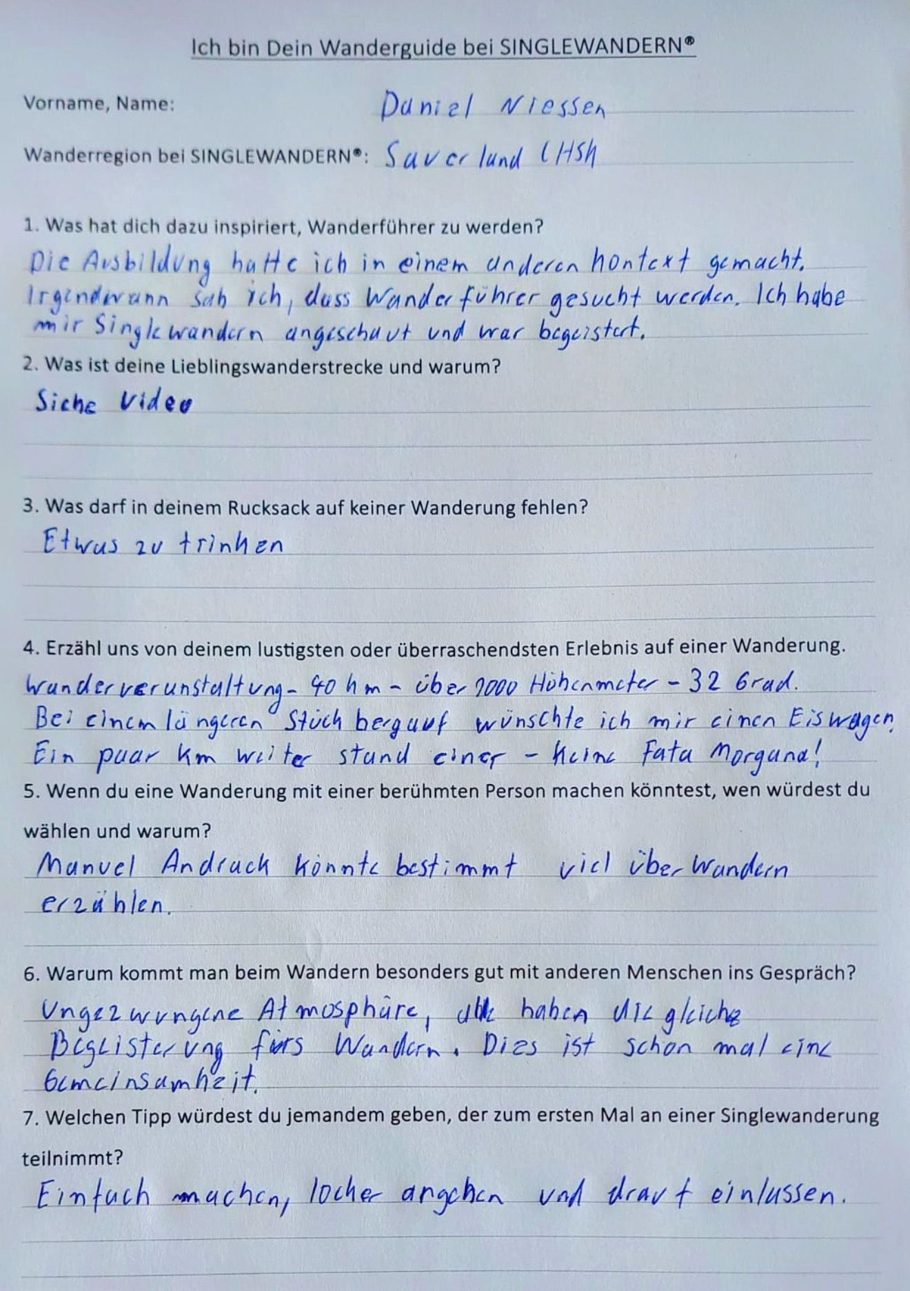 Hinter den Kulissen von SINGLEWANDERN® arbeiten Menschen mit Herz, Erfahrung und Leidenschaft, die jede Wanderung zu einem schönen Erlebnis machen. Unsere Wanderführer kennen die Wege, lieben die Natur und freuen sich darauf, dich in ihrer Region zu begleiten.